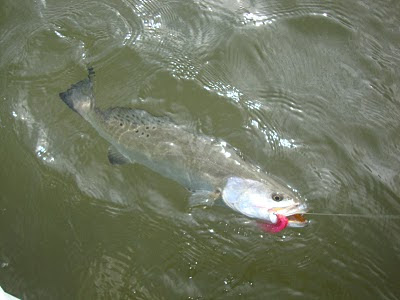 The morning started at a snails pace. The tide didnt really start moving untill closer to 9am. I concentrated my casts along a shallow gut that is becoming increasingly more silted in. The hydraulics of the bay have shifted major water flows around the area we have been fishing for about 5 years. I think last years back bowl on a screaming mid morning incoming was the most rewarding for me. The fact that there was a lazy tide and less than aggressive fish seemed to work in the favor of fly casting. I have caught 20+ inch trout on flys an inch long. But the bleeding pink bait fish cast so good I couldnt take it off and so by sticking to my guns I eked out one last fish before I called it. I love 10-15 at my back. Easy casting and hard takes leaves me satisfied and thankful. Thanks for taking me fishing Dad.